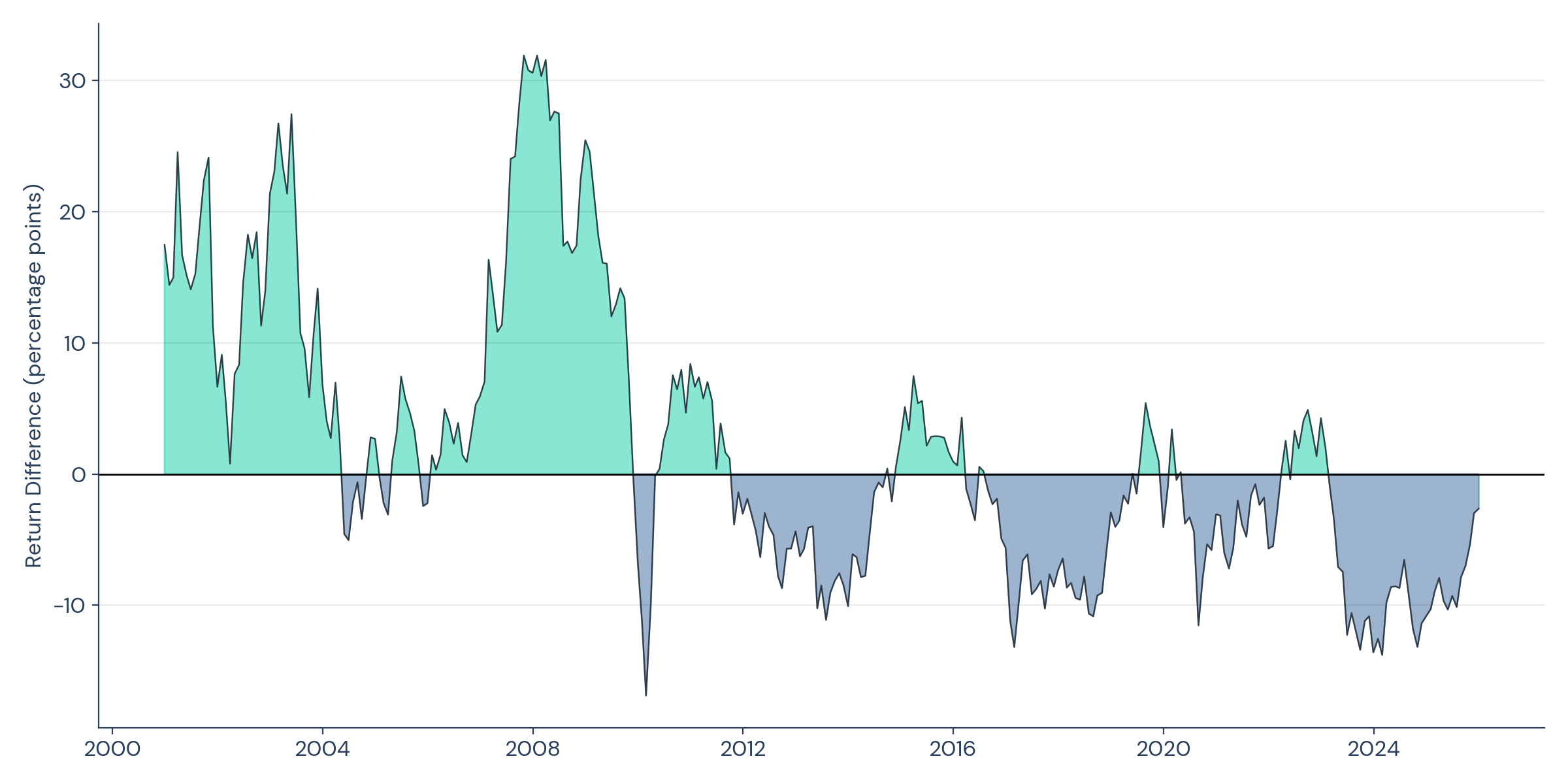 This isn’t a portfolio construction failure. It’s the expected cost of being different. The optimal portfolio is different, and that’s what generates the excess return. But the same difference that drives long-term outperformance creates short-term experiences that most clients (and most allocators) would find intolerable.